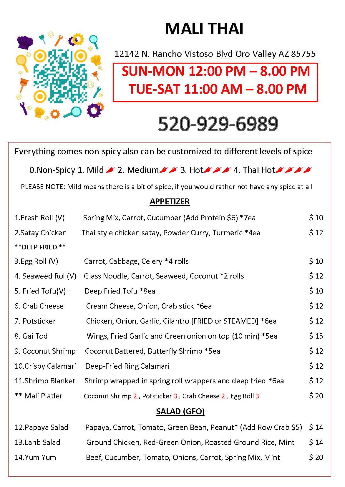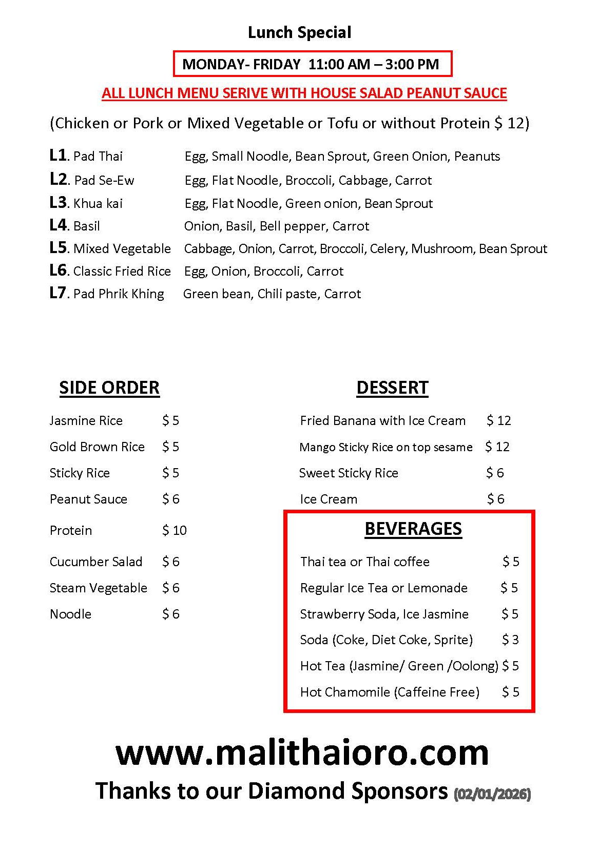 Today, I bring these talents to my Mali Thai restaurant so all my guests can enjoy our delicious cuisine and experience the wonderful flavors of my Thai recipes. I look forward to hosting you all and treating you like family.